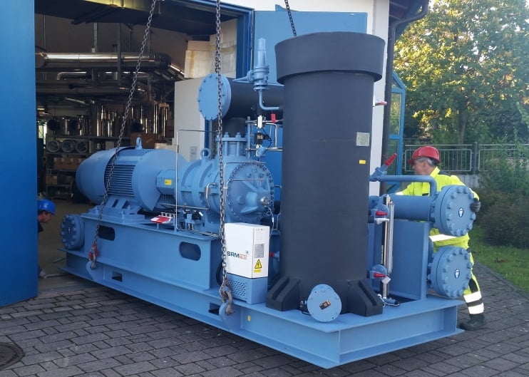 Das erste halbhermetische zweistufige Ammoniak Schraubenverdichteraggregat in Europa wurde in