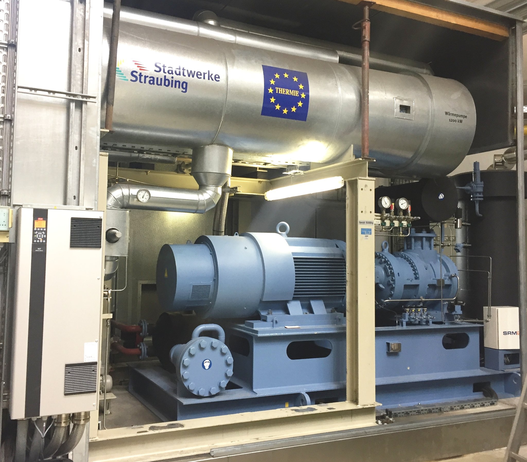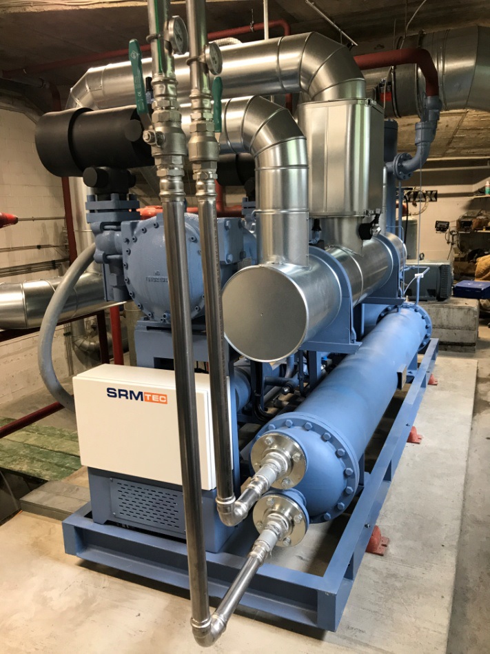 Die Therme Straubing wird seit 16 Jahren von den Stadtwerken Straubing als Fernwärme-Dienstleistung betrieben. Als Wärmequelle dient Thermalwasser von 36°C dem durch verdampfendes Kältemittel 7K Energie entzogen wird und damit den Wasser-Heizkreislauf mit 70°C bedient. Bislang waren Hubkolbenverdichter von SABROE im Einsatz, welche nun das Ende ihrer effizienten Betriebszeit erreicht hatten und ersetzt wurden. Als Ersatzmaschinen wurde aufgrund von geringen Betriebskosten und hoher Zuverläßigkeit ein SRMTec Schraubenverdichter Typ SRH gewählt.